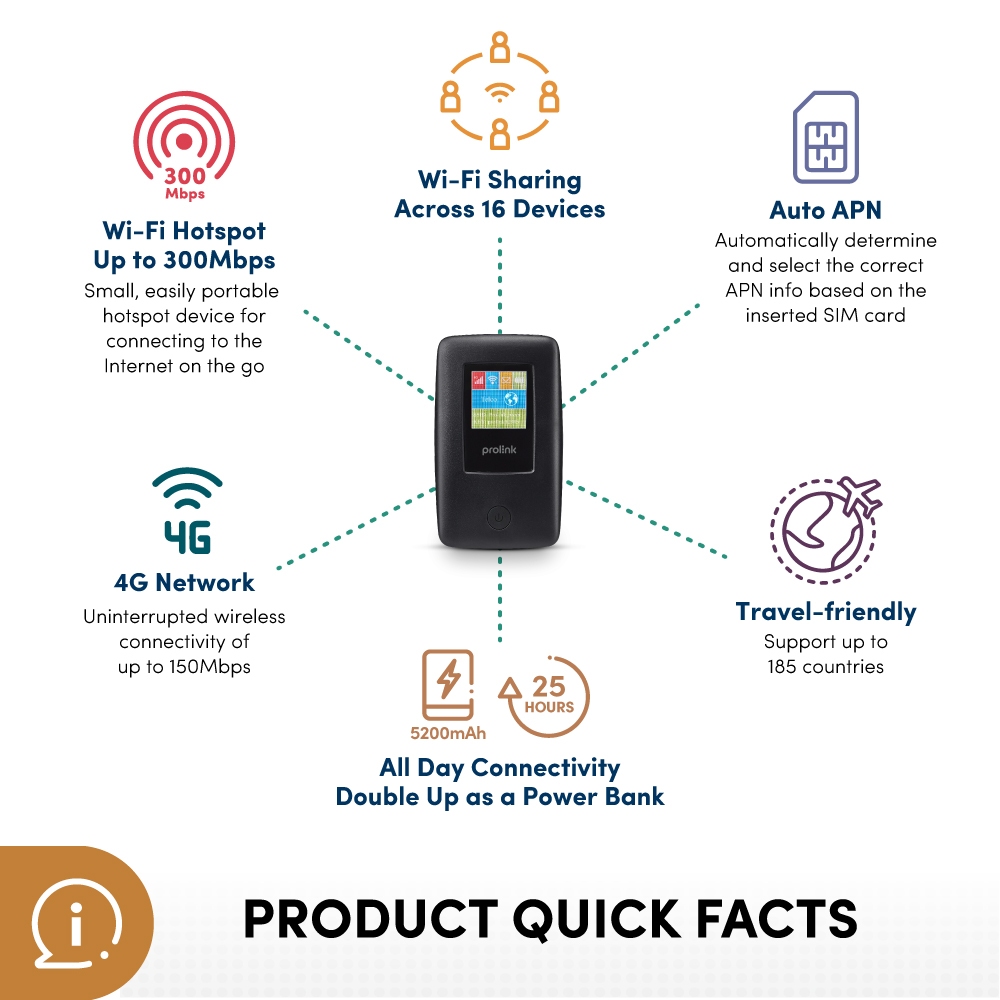 [25 hour Portable Mi-Fi | Power bank] Prolink DL-7203E 4G LTE Mobile WiFi with LCD display with RJ45 LAN port/ Powerbank