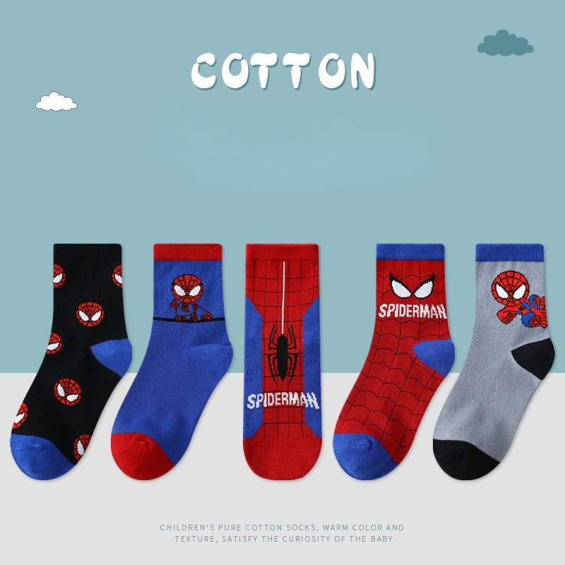 5Pairs Disney Baby Socks Spiderman Cartoon Anime Cotton Boys Tube Socks Children Autumn Winter Socks