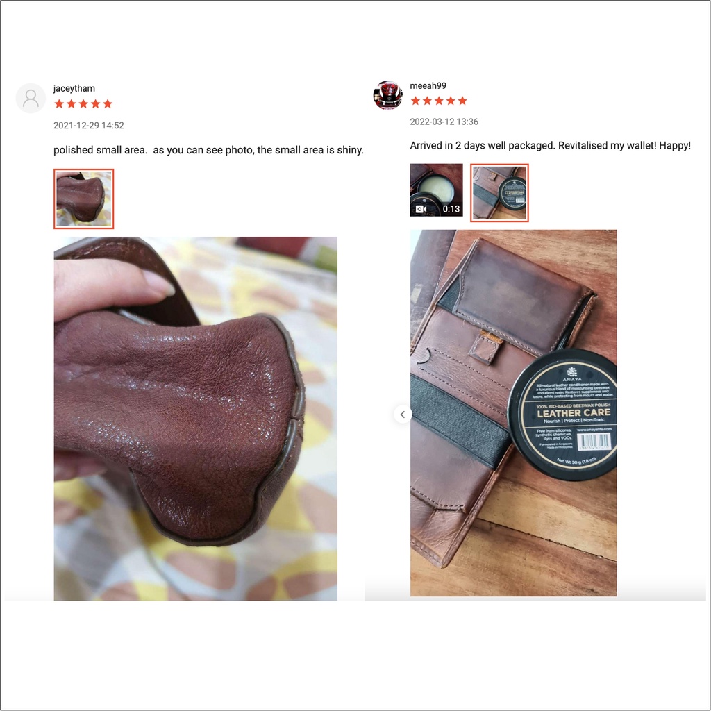 Seller responded promptly to my queries abt their product range and decided to buy to try. The shipping was quite fast and I received quite soon. The wax indeed makes a difference and helps revitalise the leather. Good product for helping to maintain the leather.