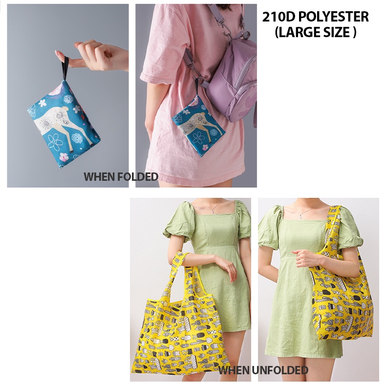 ✅ [SG] Foldable Grocery Bag/ Large Capacity Travel Shopping Folding Bag/ Foldable Drawstring Nylon Tote Bag