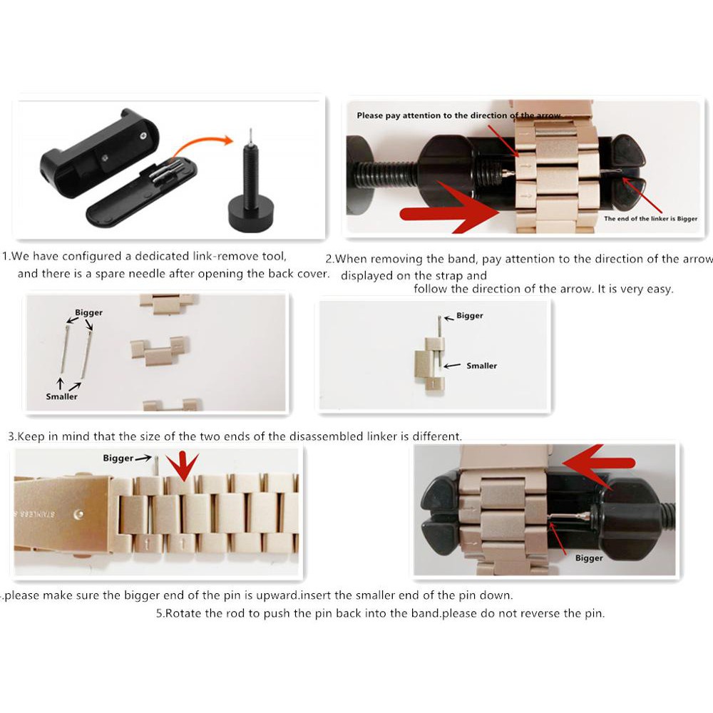 1pc Watch Bracelet Link Pin Removal Tool, Easily Watch Band Adjustment Sizing Tool ,Straps Remover Comes with 5pcs Reinforced Pins and Adjustable Height Function