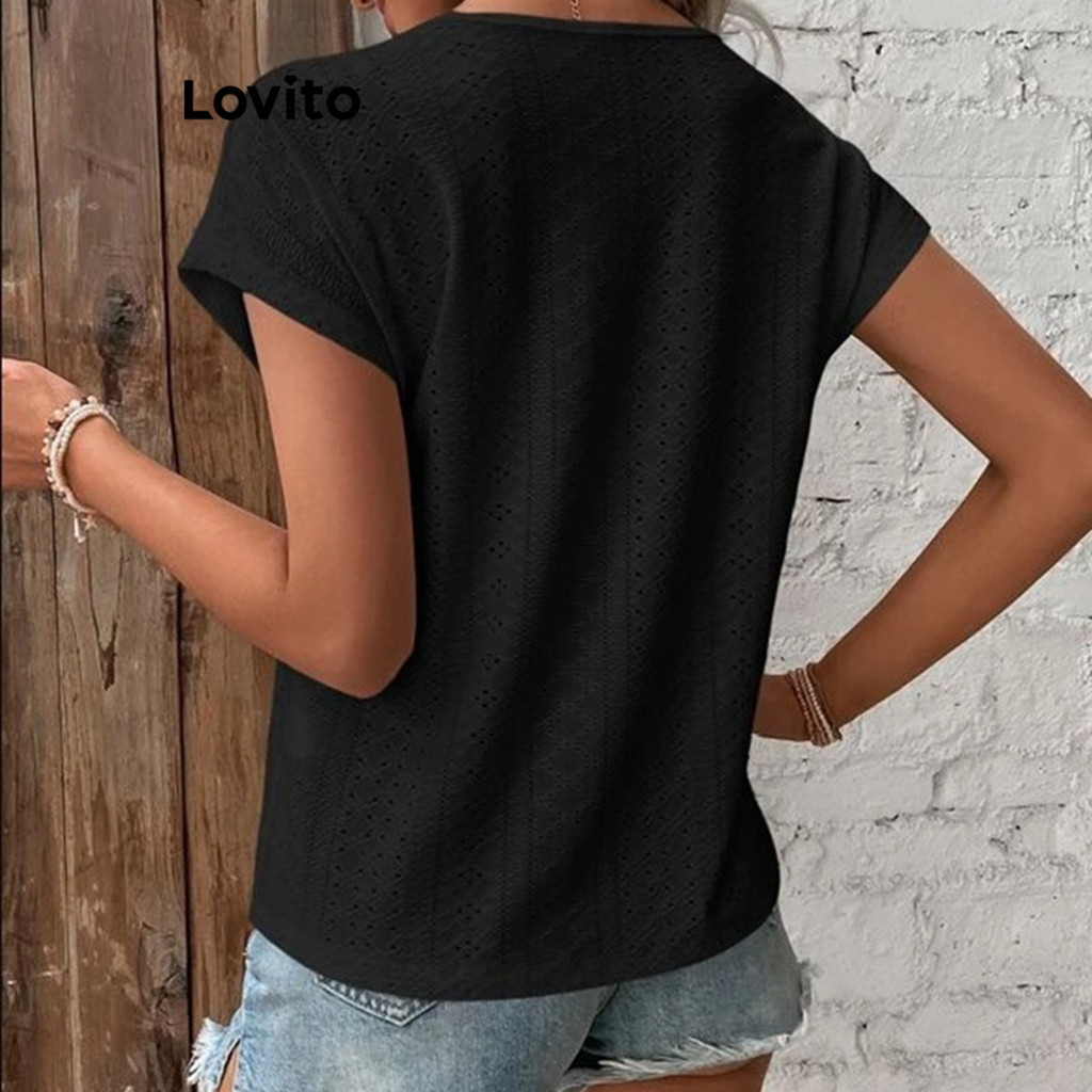 Lovito Casual Plain Button T-Shirt for Women LNL36064 (Apricot/Hot Pink/Green/Black)