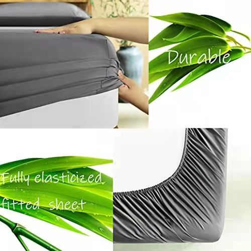 Luxury 100% Bamboo Fiber Fitted Bedsheet Silk Cooling Feel Bed sheet Super Soft Silky Smooth Bed Cover Single Queen King Size