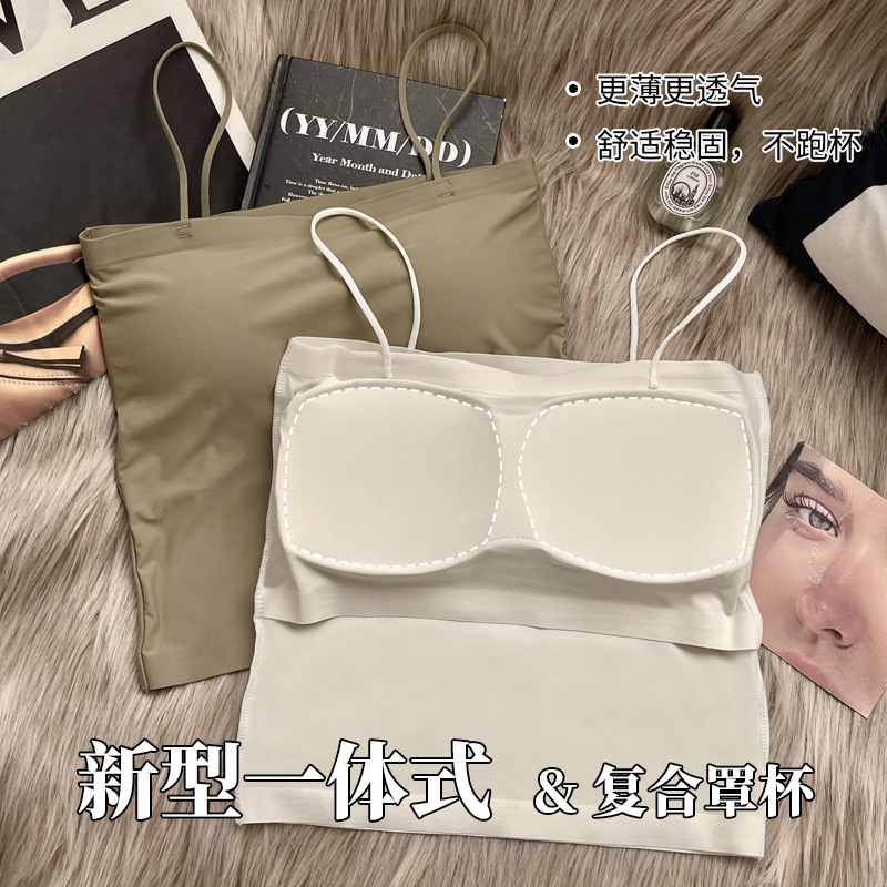 Maniyun Summer Ice Silk Sling Camisole With Padding Women Singlet Top Seamless Suspender