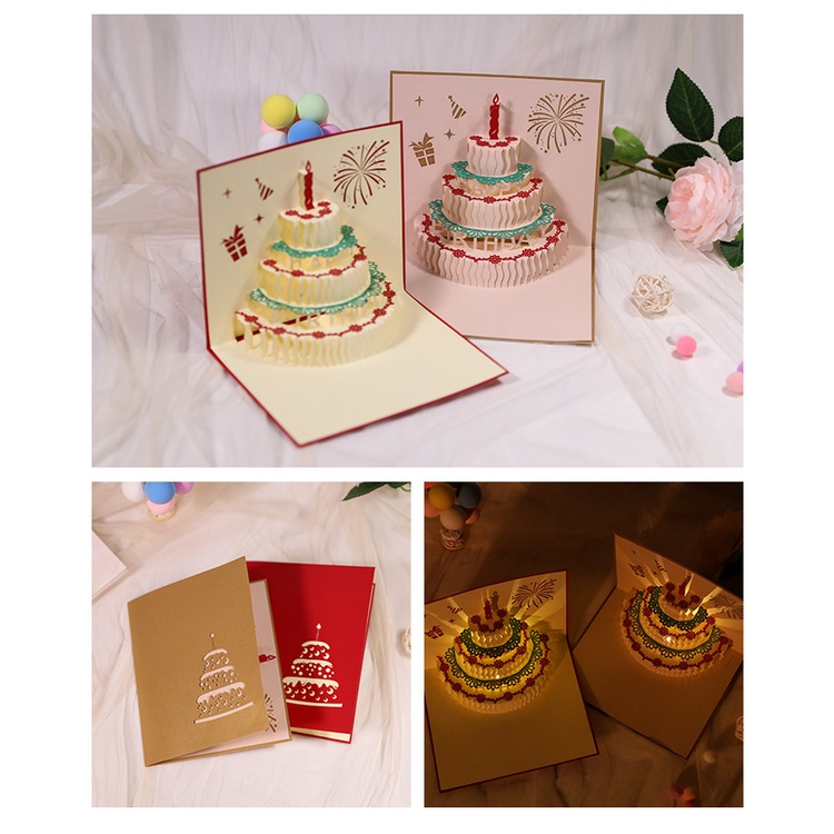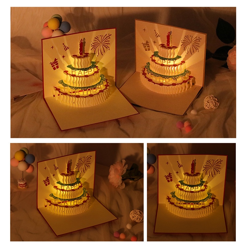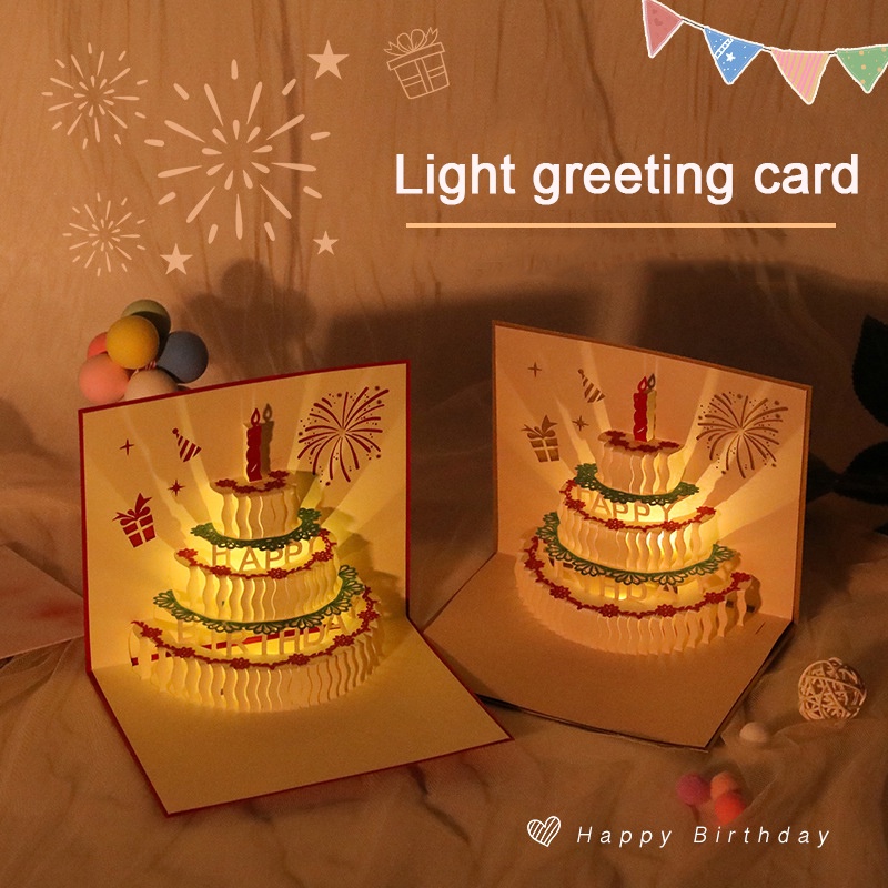 Music Birthday Card Pop Up 3D Cake Musical Light Greeting Card (Include Music Light And No Music Light) Creative Birthday Party Gift Message Card