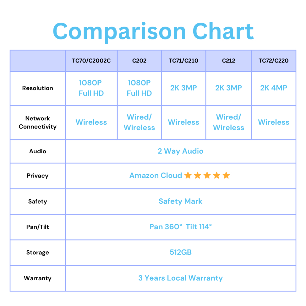 TP-LINK Tapo TC70 | TC71 | TC72 | C210 | C211 | C212 | C225 Pan Tilt CCTV Home Security Camera