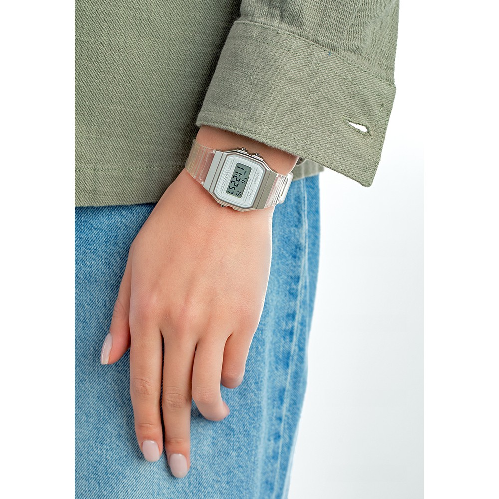 Colour:black Material Quality:good Classic Casio that will never go wrong. Will be getting the other versions for fun to wear and also put in different bags. Delivery was fast and as promised.