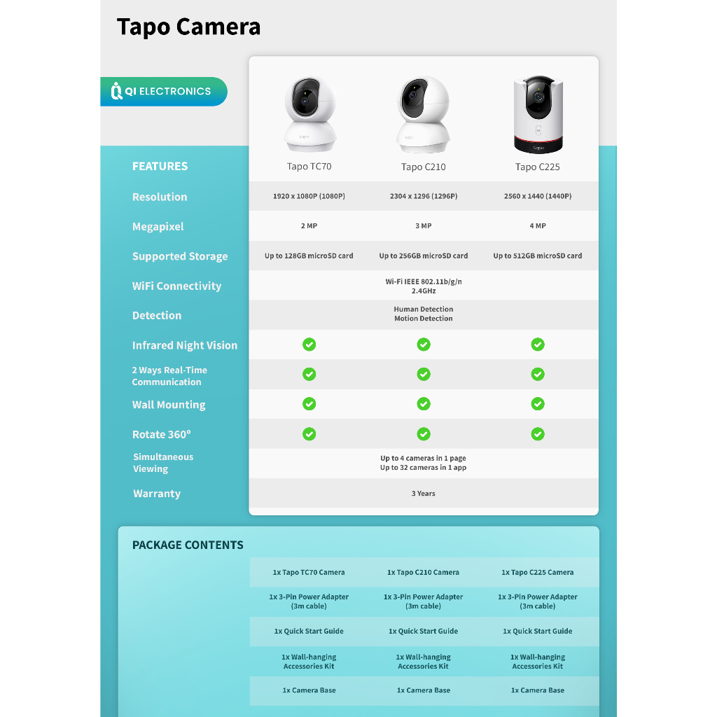 TP-LINK Tapo TC70 | TC71 | TC72 | C210 | C211 | C212 | C225 Pan Tilt CCTV Home Security Camera